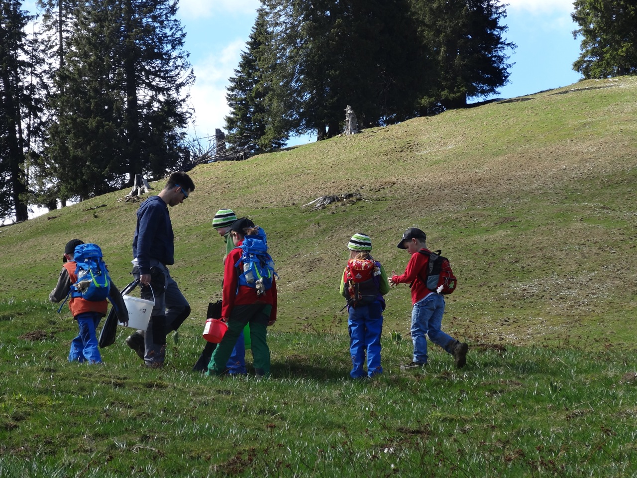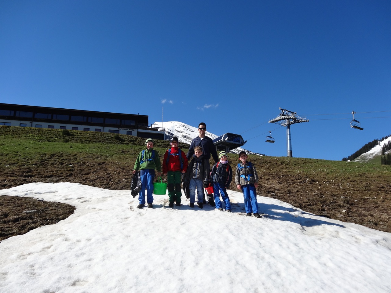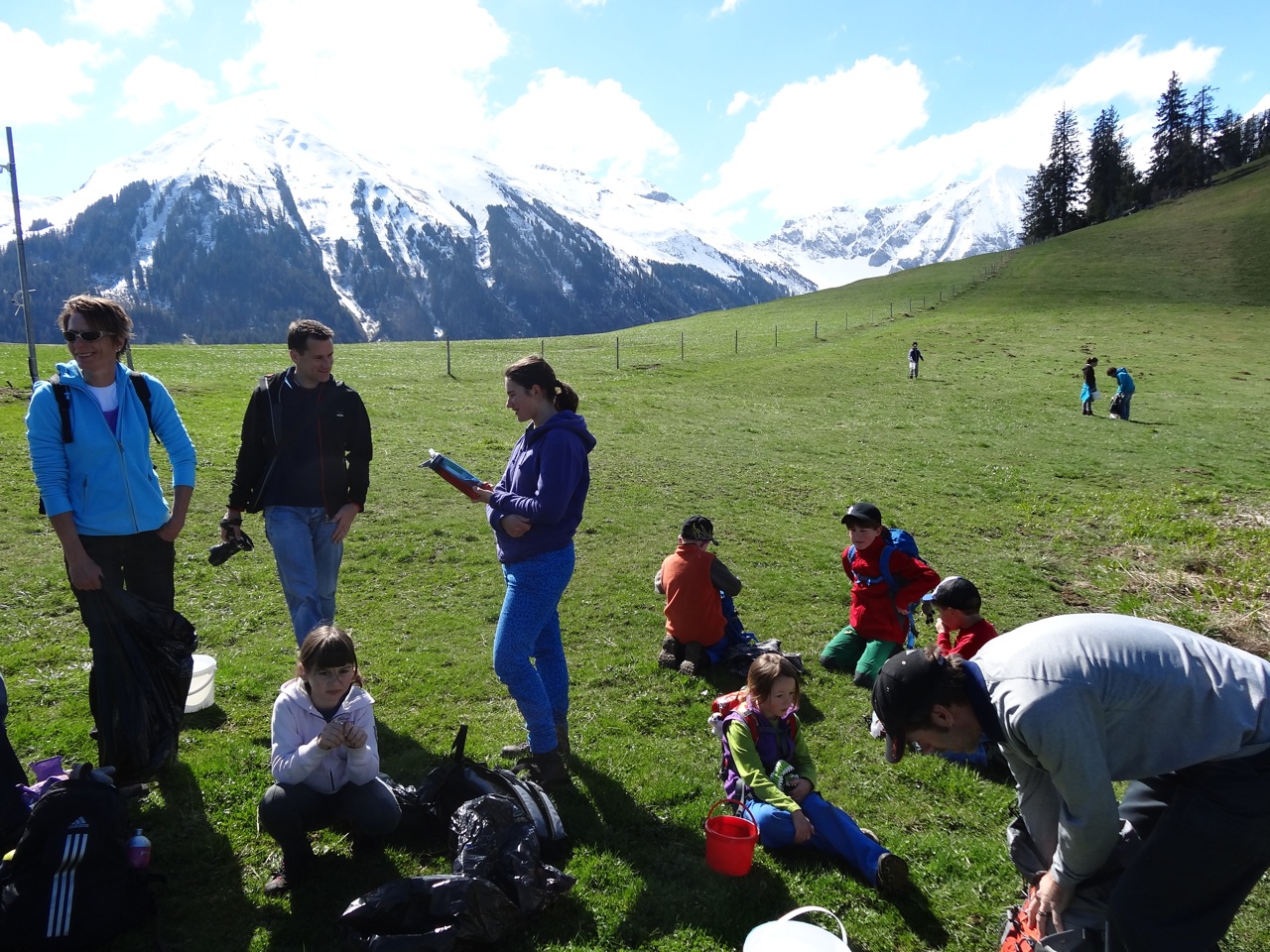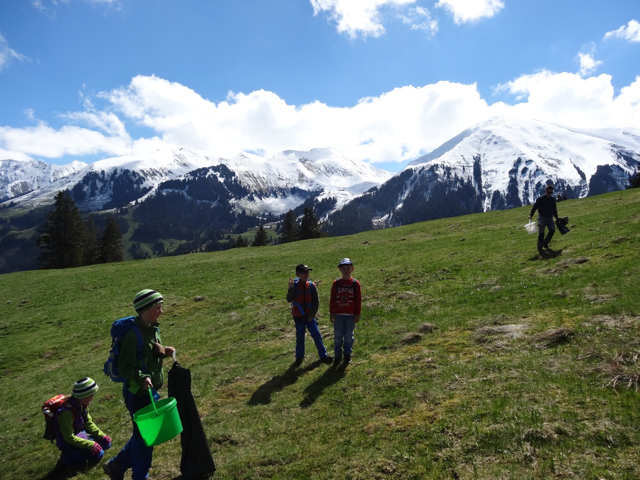 Wie immer fanden sich viele Kinder der verschiedenen Skiteams des Niedersimmental bei der Talstation der Wiriehornbahnen ein, um den ganzen Tag zu Fuss den Müll der letzten Saison und auch Steine von den Pisten zu entfernen.